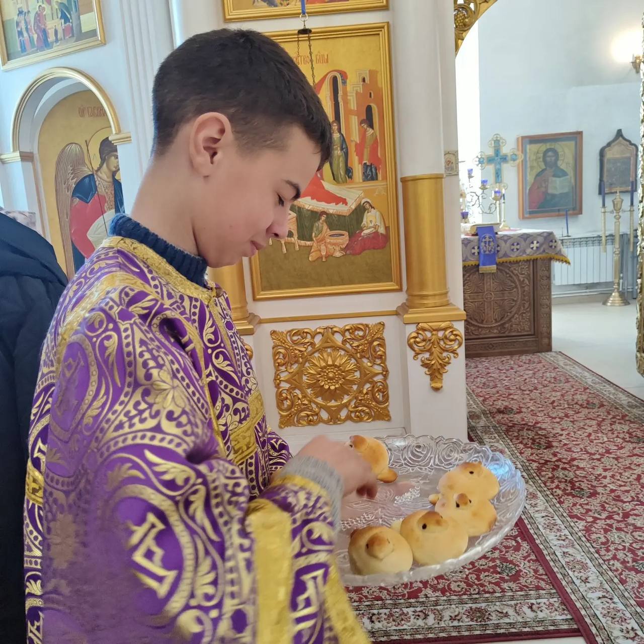 По окончании Литургии отец Владимир совершил славление мученикам Севастийским и обратился к прихожанам, напомнив житие святых сорока Севастийских мучеников, сказав о том, что в это праздник, посвященный мужеству и стойкости сорока воинов, принявших мученическую смерть за веру во Христа.