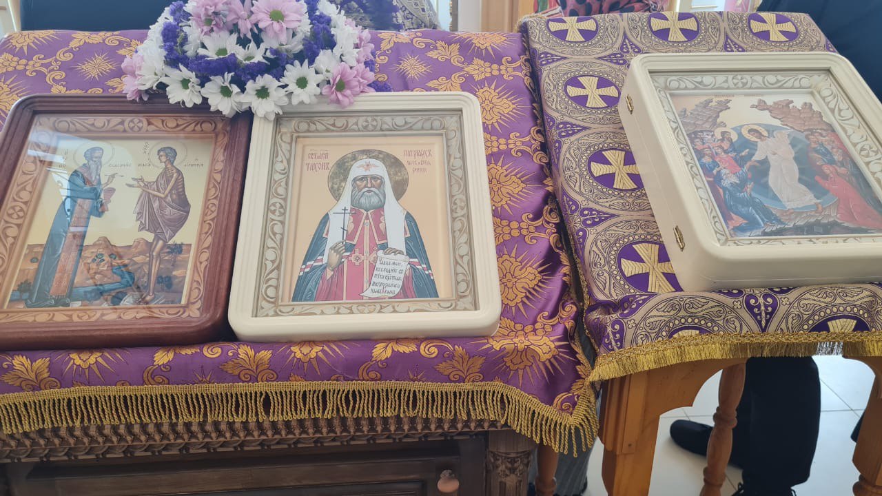 В сам день праздника, 6 апреля, отец Владимир совершил Божественную Литургию, по окончании которой зачитал обращение Патриарха Московского и всея Руси Кирилла по случаю 100-летия преставления святителя Тихона патриарха Московского и всея Руси.