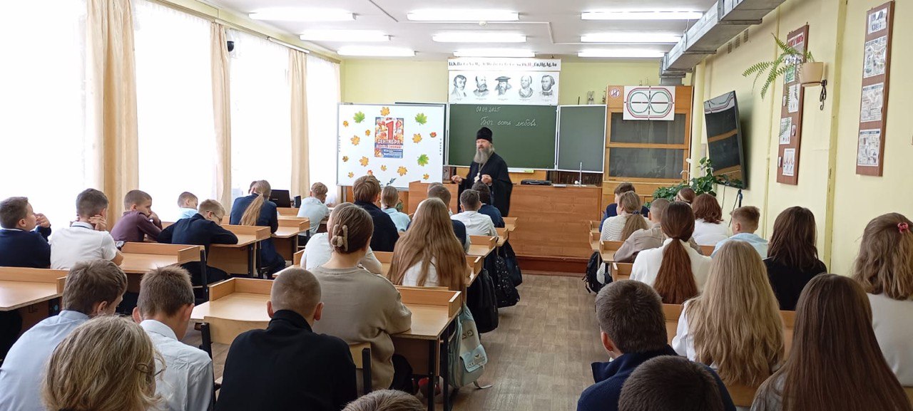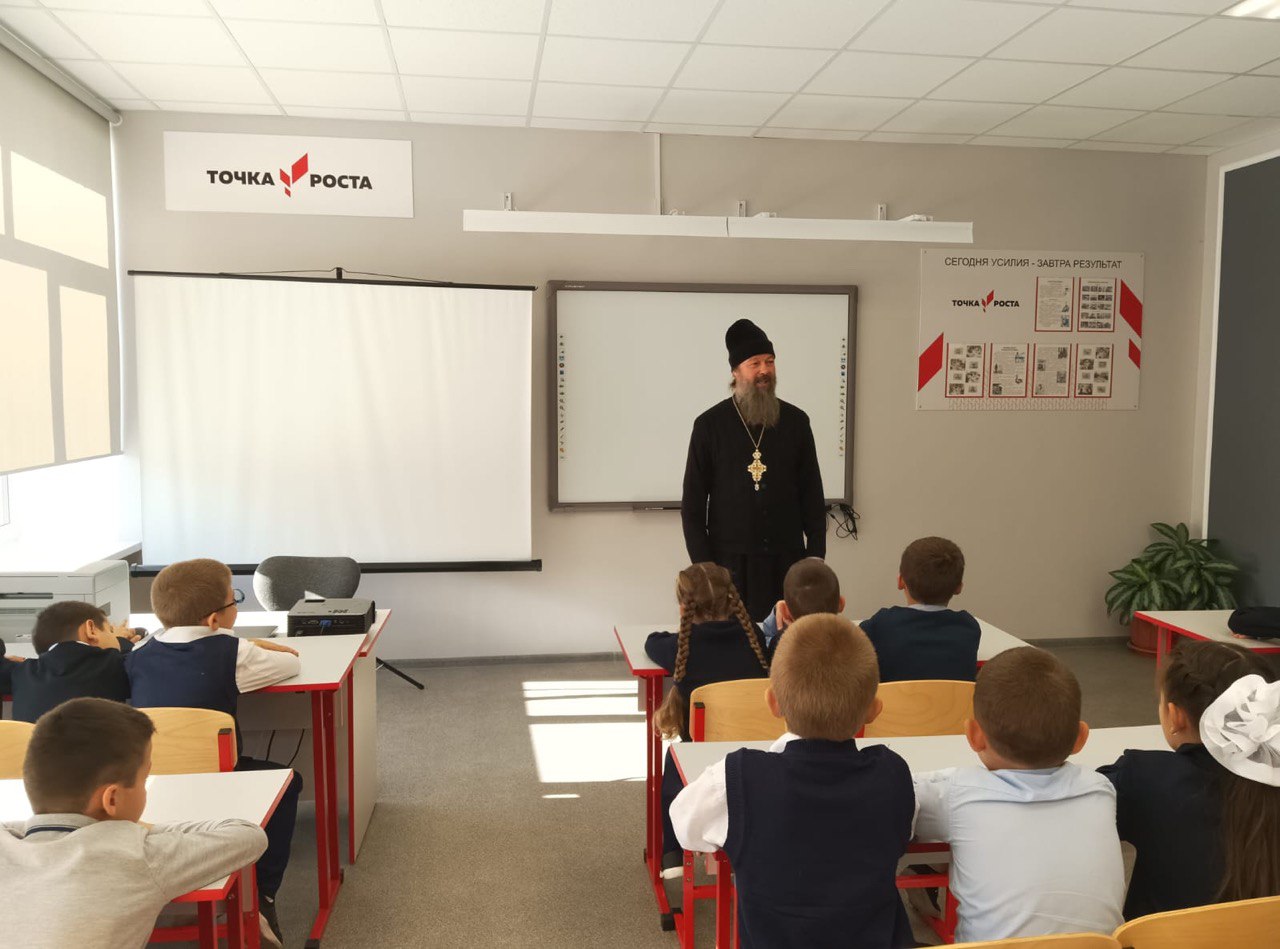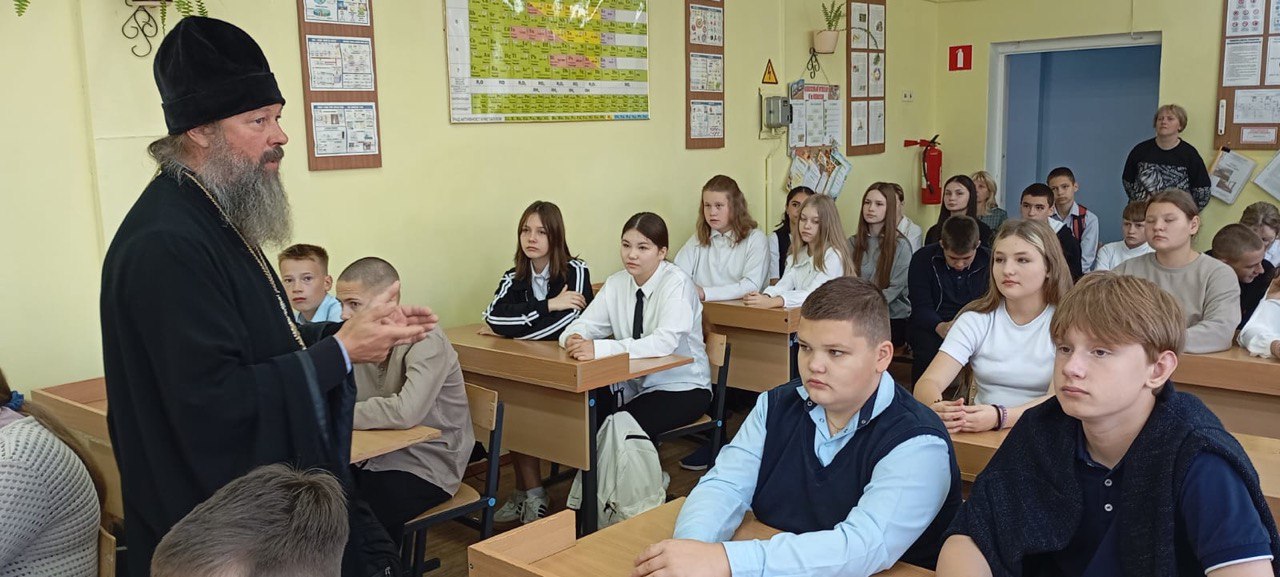 В рамках регионального проекта «Задай вопрос священнику» в МОУ «Пановская СОШ» п.Лесной проходят встречи настоятеля Богородицерождественского храма д.Богородское протоиерея Владимира Пахачева с учащимися школы.