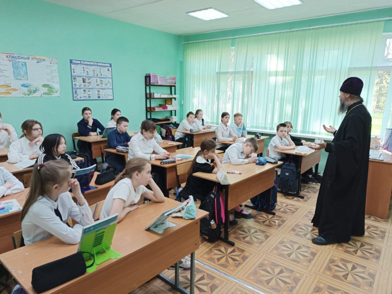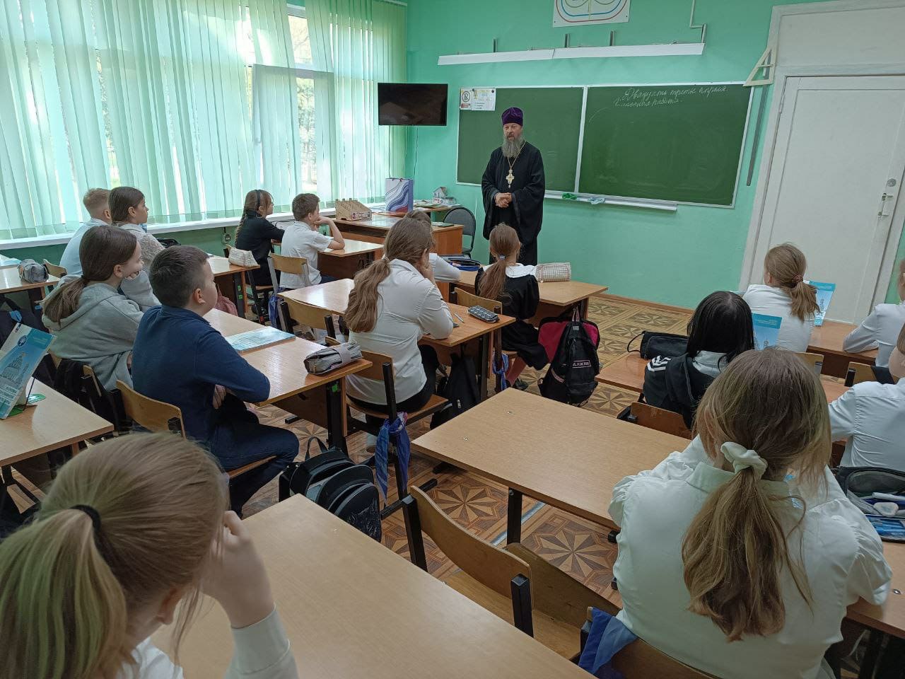 В 4-ом классе на уроке ОПК обсуждалась тема монашества и монастырей, подвиг преподобного Сергия Радонежского игумена земли Русской. В конце встречи отец Владимир ответил на вопросы детей.