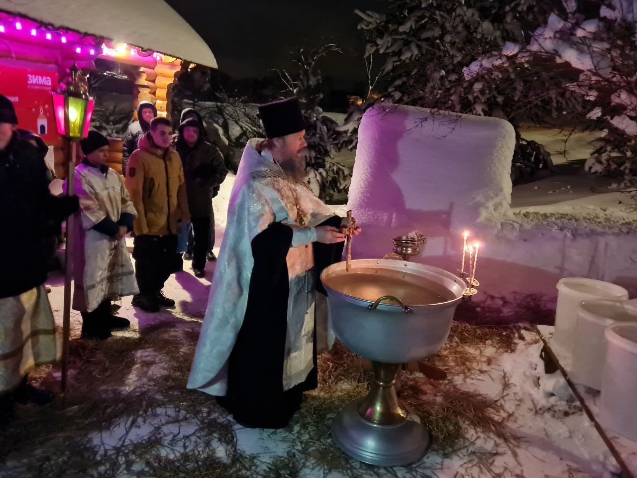 19 января Церковь празднует праздник Крещения Господня. В Богородицерождественском храме д.Богородское праздничное богослужения началось Всенощным Бдением. В полночь настоятель храма протоиерей Владимир Пахачев отслужил праздничную Литургию св.Василия Великого. По окончании богослужения, под колокольный звон, с пением тропаря праздника из храма вышел Крестный ход на источник прп.Сергия. Здесь отец Владимир совершил Великое освящение воды. После освящения, все желающие могли окунуться в купели на источнике и набрать с собой освященной воды.