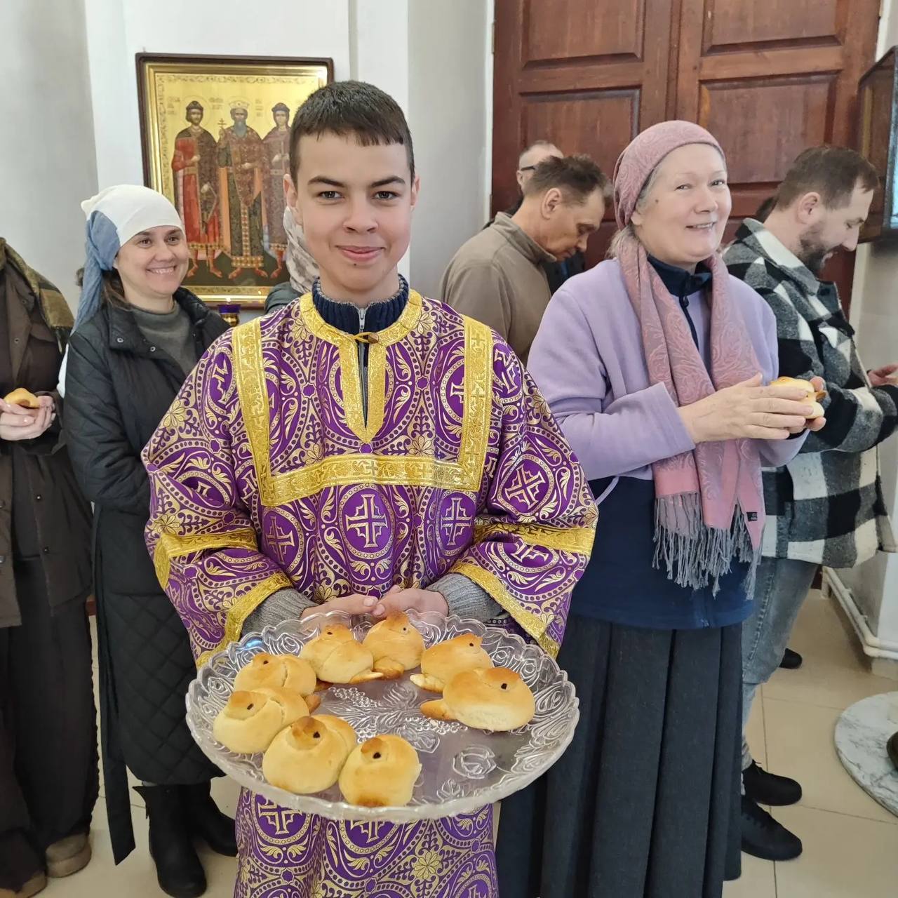 По окончании Литургии отец Владимир совершил славление мученикам Севастийским и обратился к прихожанам, напомнив житие святых сорока Севастийских мучеников, сказав о том, что в это праздник, посвященный мужеству и стойкости сорока воинов, принявших мученическую смерть за веру во Христа.