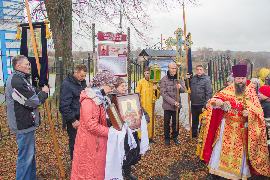 80 лет назад прервалась жизнь православного священника Александра Соловьева. Александр родился и провел детство в селе Богородском. Настоятелем Богородицерождественского храма был отец будущего священномученика священник Иоанн Соловьев. В 1916 году Александр был рукоположен во диакона, в 1921 году – во священника к Богородице-Казанскому храму села Королевка Самарской губернии. С 1924 года и до ареста в 1937 году отец Александр – священник Преображенского храма села Сляднево Волоколамского района. Жизненный путь Александра Соловьева окончился в 1937 году- 9 октября он был арестован, а уже 3 ноября 1937 года тройка НКВД приговорила его к расстрелу. Священник был расстрелян 5 ноября 1937 года и погребен в безвестной общей могиле на полигоне Бутово. Священномученик Александр Соловьев был причислен к лику святых на Архиерейском Соборе в 2000 г. Память отца Александра совершается 5 ноября. И сегодня, в день памяти, на родине мученика в селе Богородском прошла служба. Настоятель Богородицерождественского храма протоиерей Владимир Пахачев возглавил Божественную литургию, а по окончании службы был освящен стенд, повествующий о судьбе священномученика Александра Соловьева. На богослужении присутствовали прихожане Богородицерождественского храма, Троицкого храма Коломны в Щурове, воспитанники детского приюта при Троицком храме Коломны.