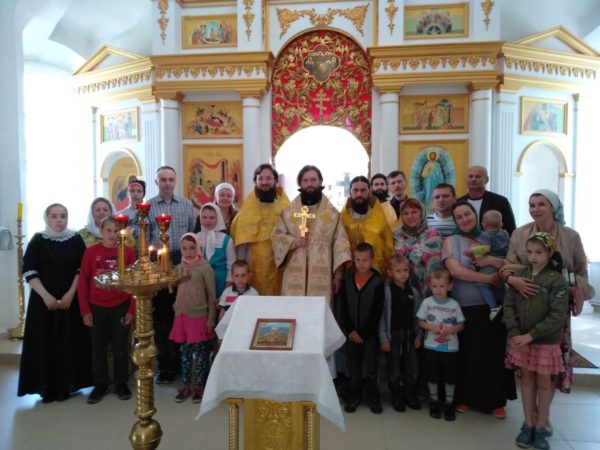 Его Преосвященству сослужили настоятель священник Илья Лукьянов и клирик Троицкого храма поселка Назарьево Одинцовского района священник Александр Болотный. За Литургией молились прихожане и паломническая группа из Троицкого храма поселка Назарьево. По окончании богослужения была сделана общая фотография.