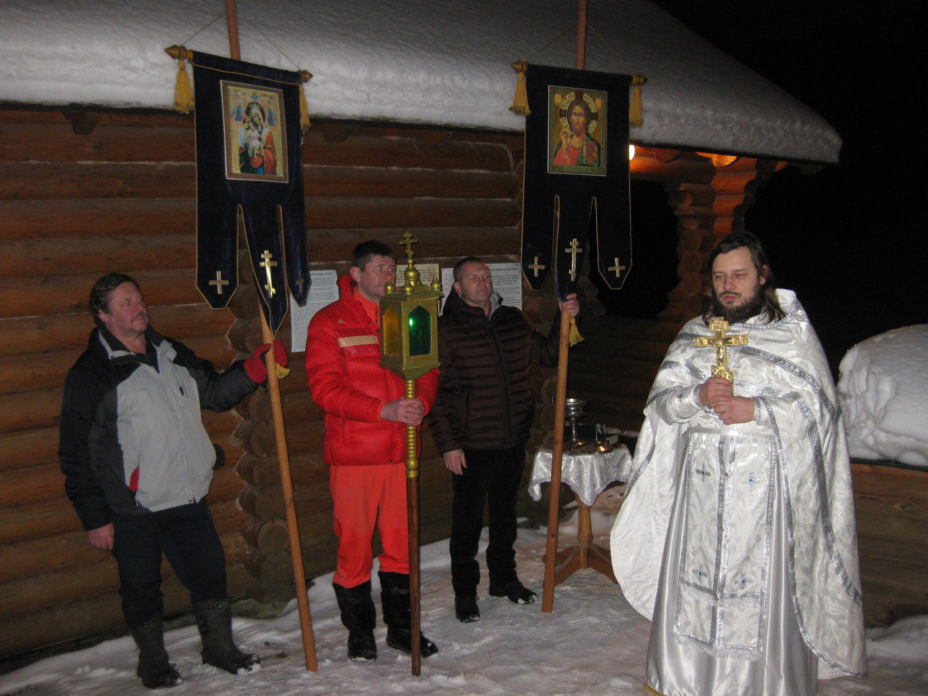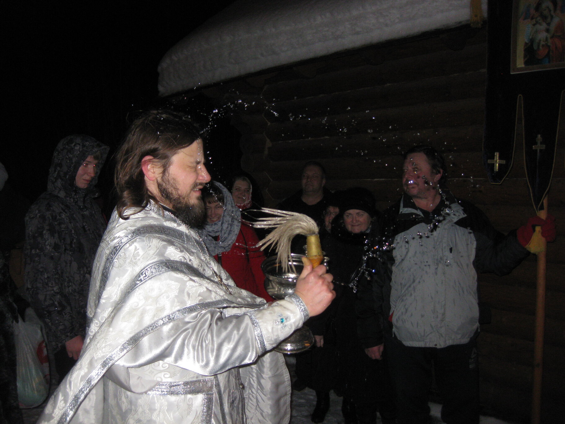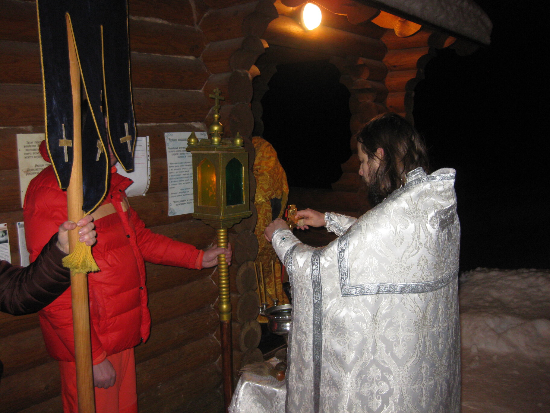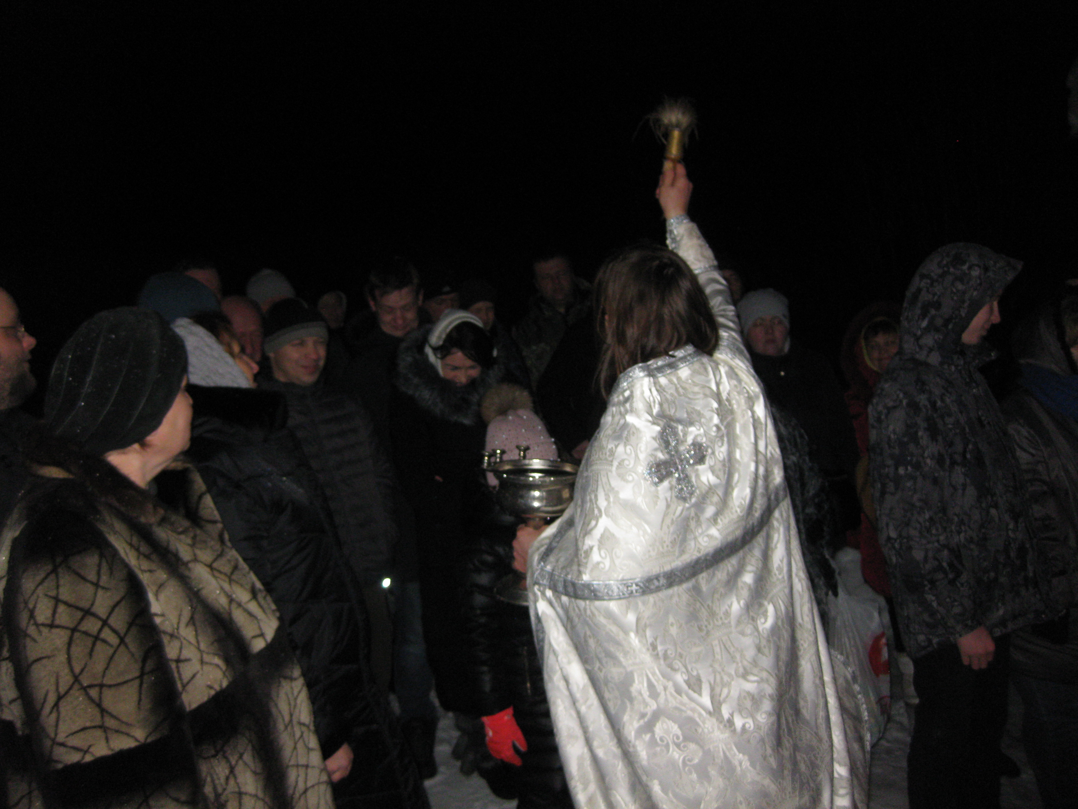 Богослужение началось крестным ходом из храма на источник под пение тропаря, кондака и величания праздника Крещения Господня. По приходу на купель клирик Успенского собора г. Коломны, священник Илия Царьков, сказал слово о смысле и значении праздника Крещения, совершил Великое освящение воды в купели и окропил молящихся. А верующие стали набирать Великую Агиасму и купаться в ней.