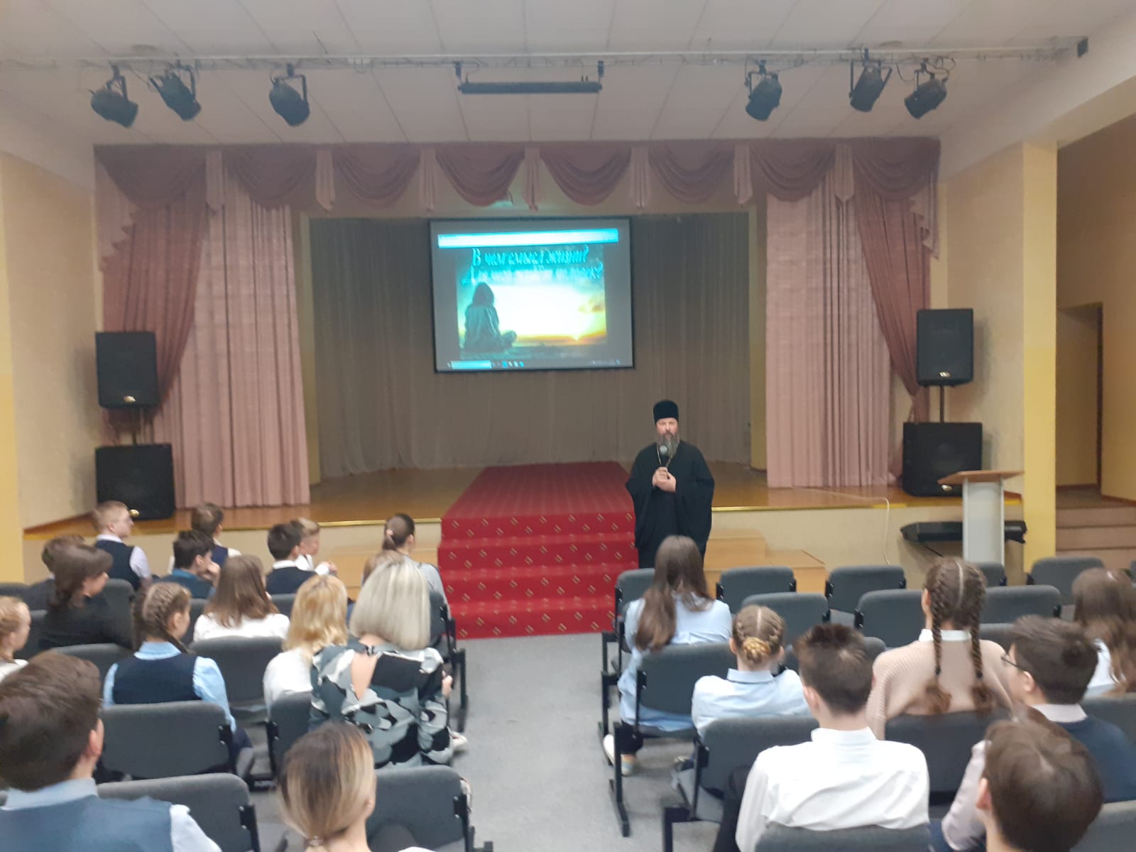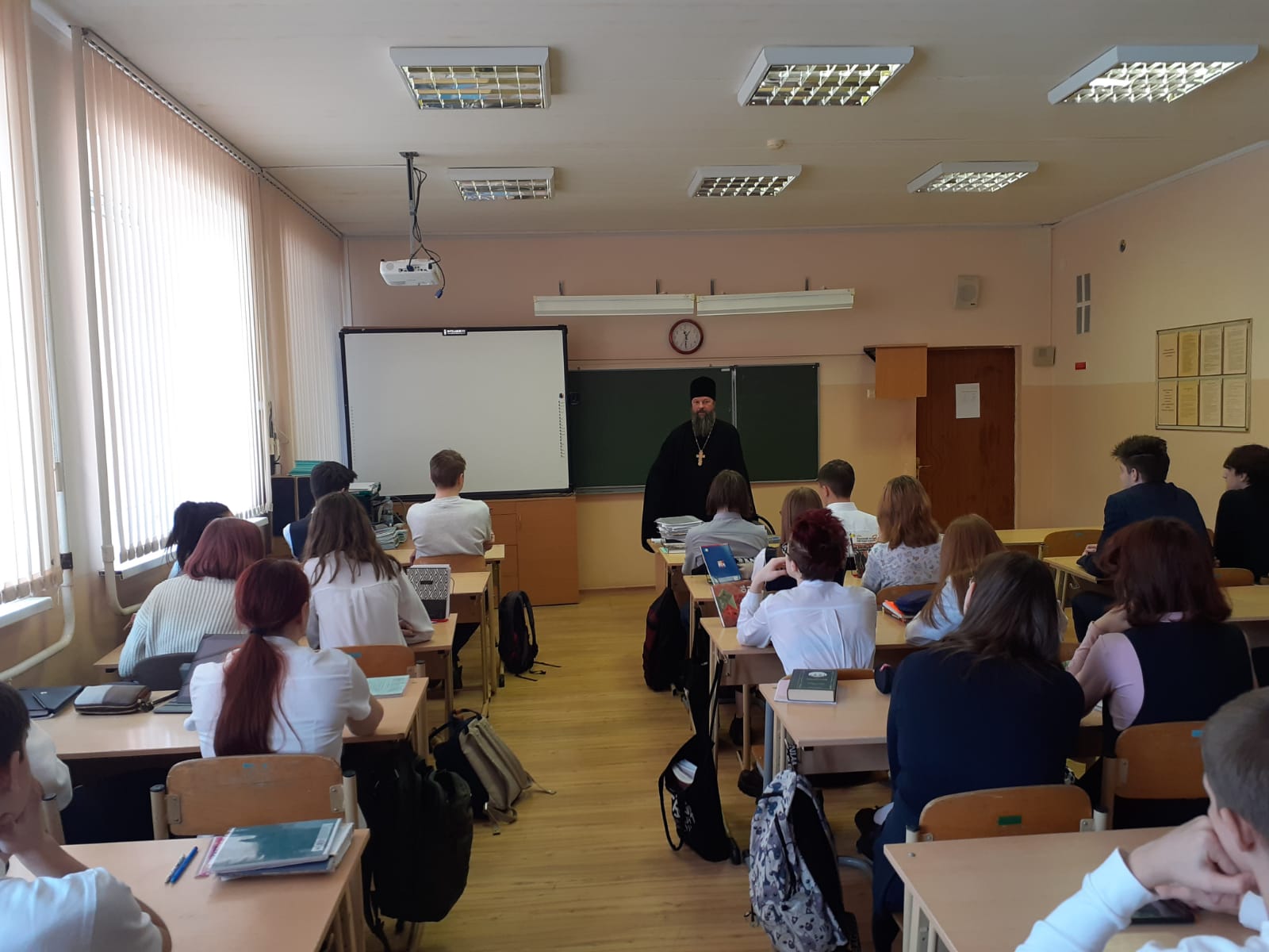 В этот же день состоялась беседа с ребятами 9-х классов на тему " О смысле жизни", в ходе которой был дан ответ на этот вопрос с христианской точки зрения.