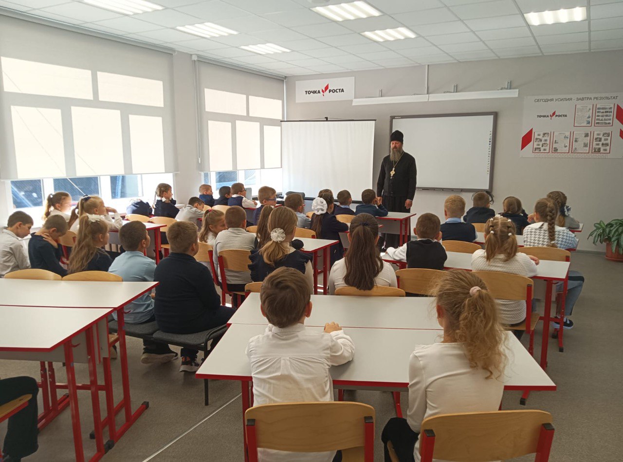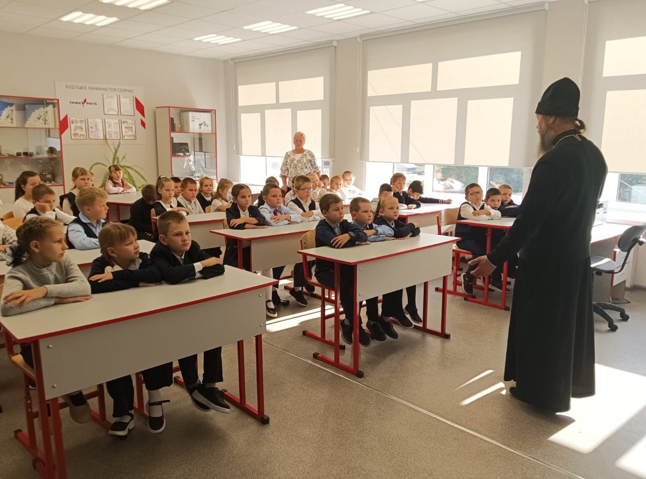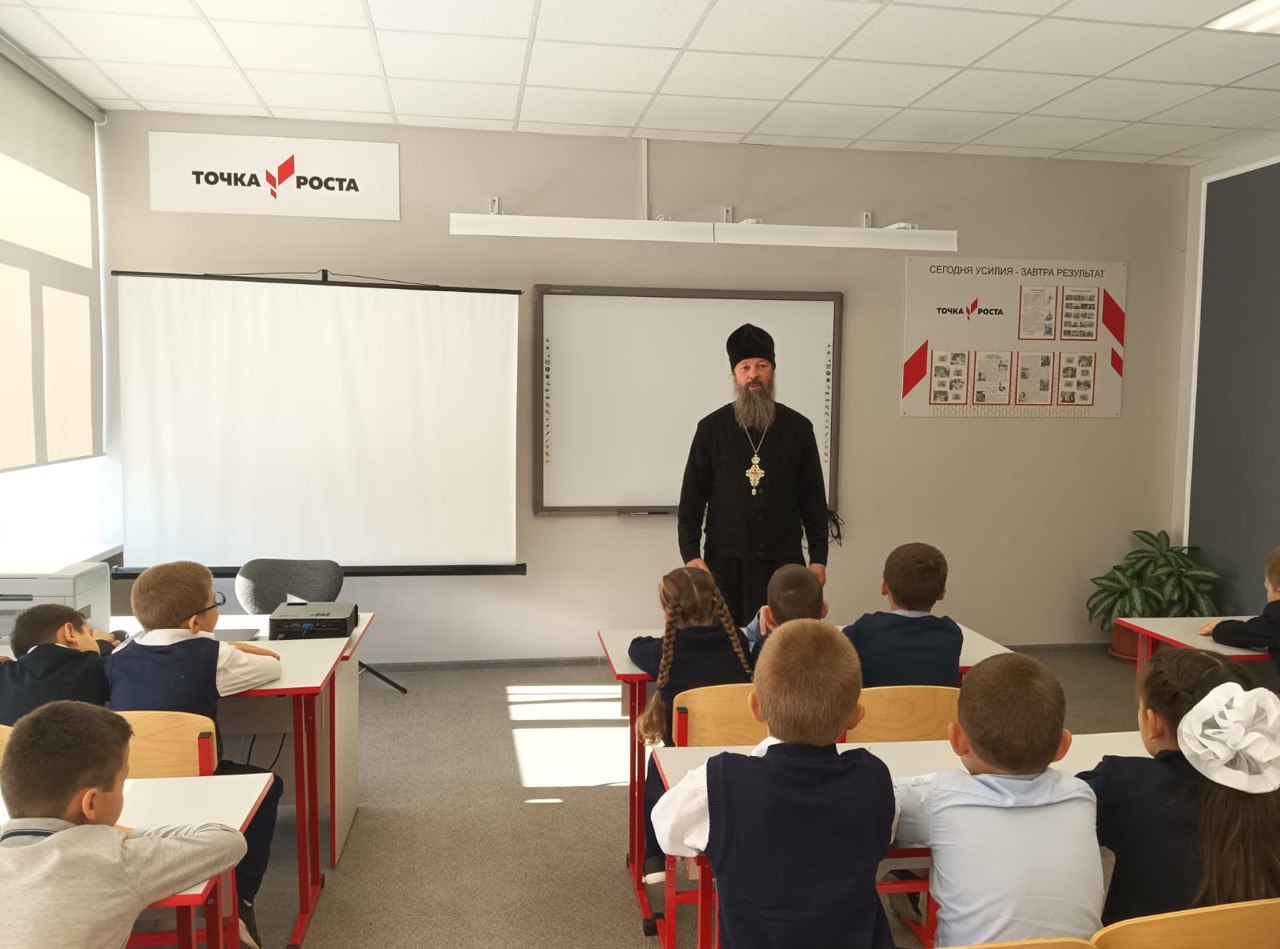 В рамках регионального проекта «Задай вопрос священнику» в МОУ «Пановская СОШ» п.Лесной проходят встречи настоятеля Богородицерождественского храма д.Богородское протоиерея Владимира Пахачева с учащимися школы.