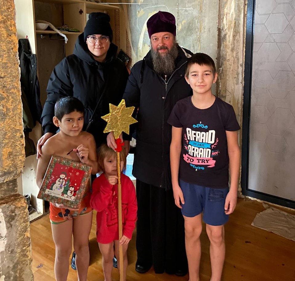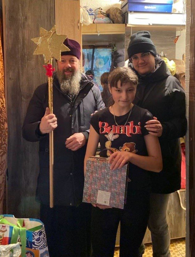 С Вифлеемской звездой в руках и пением тропаря праздника отец Владимир рассказал о событиях Рождества Христова и раздал 20 детям сладкие подарки.