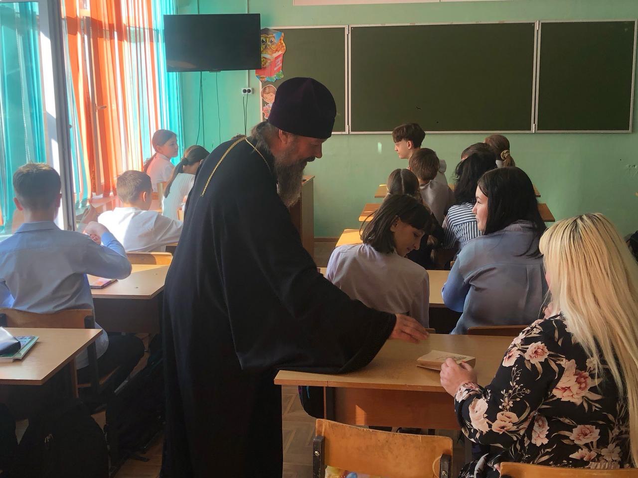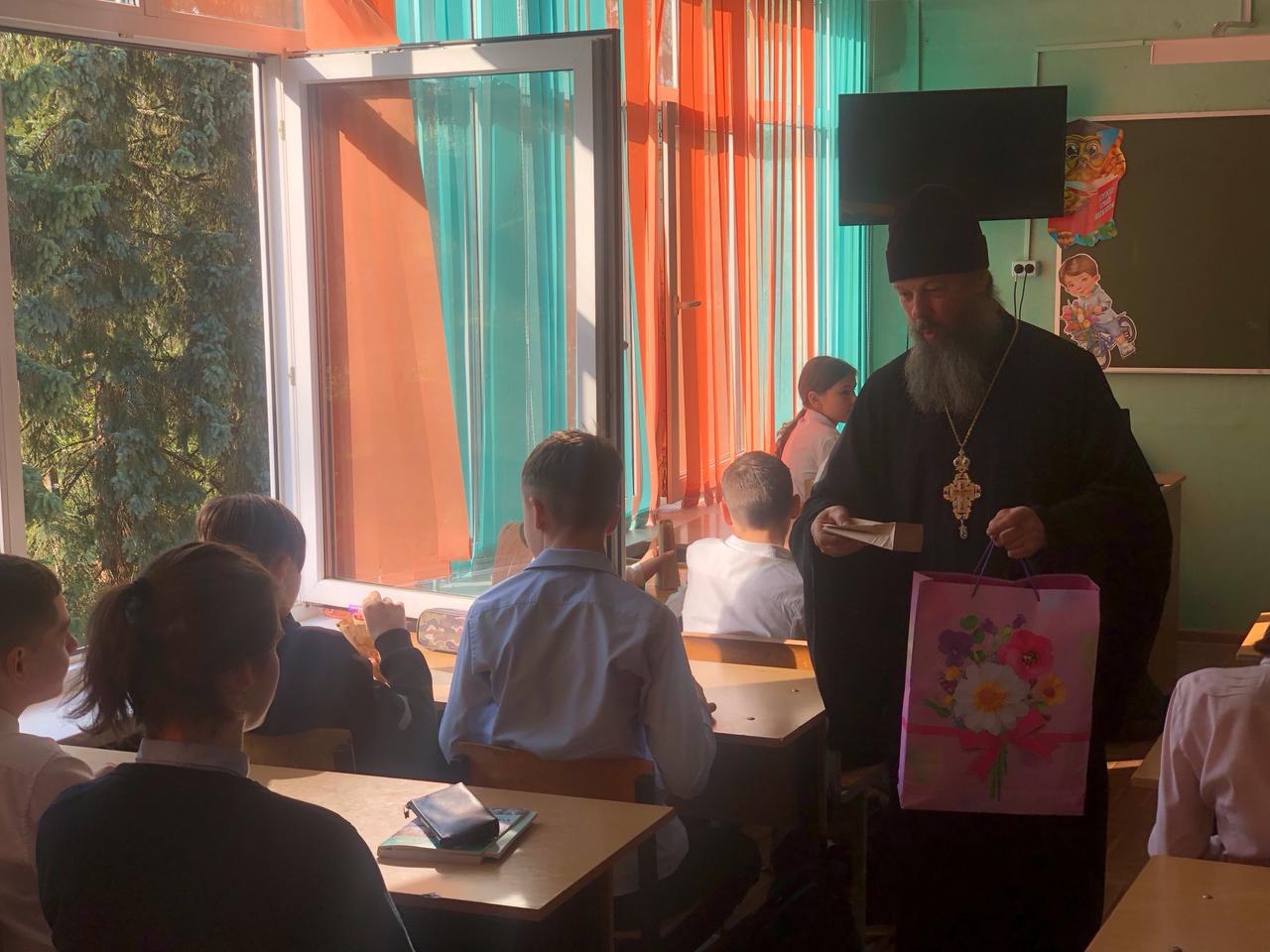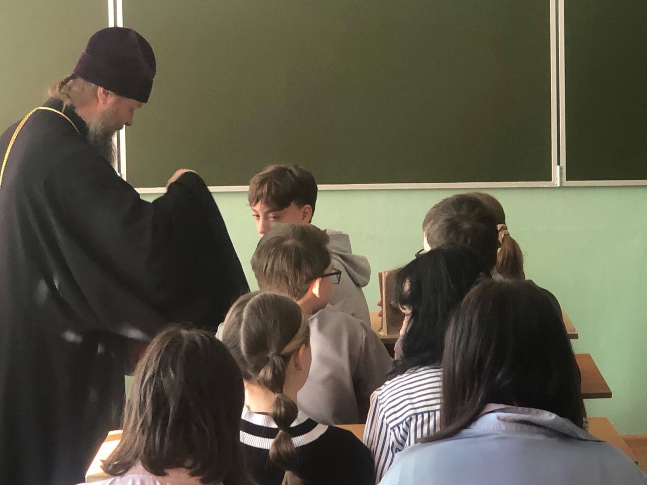 В 4-ом классе на уроке ОПК обсуждалась тема монашества и монастырей, подвиг преподобного Сергия Радонежского игумена земли Русской. В конце встречи отец Владимир ответил на вопросы детей.